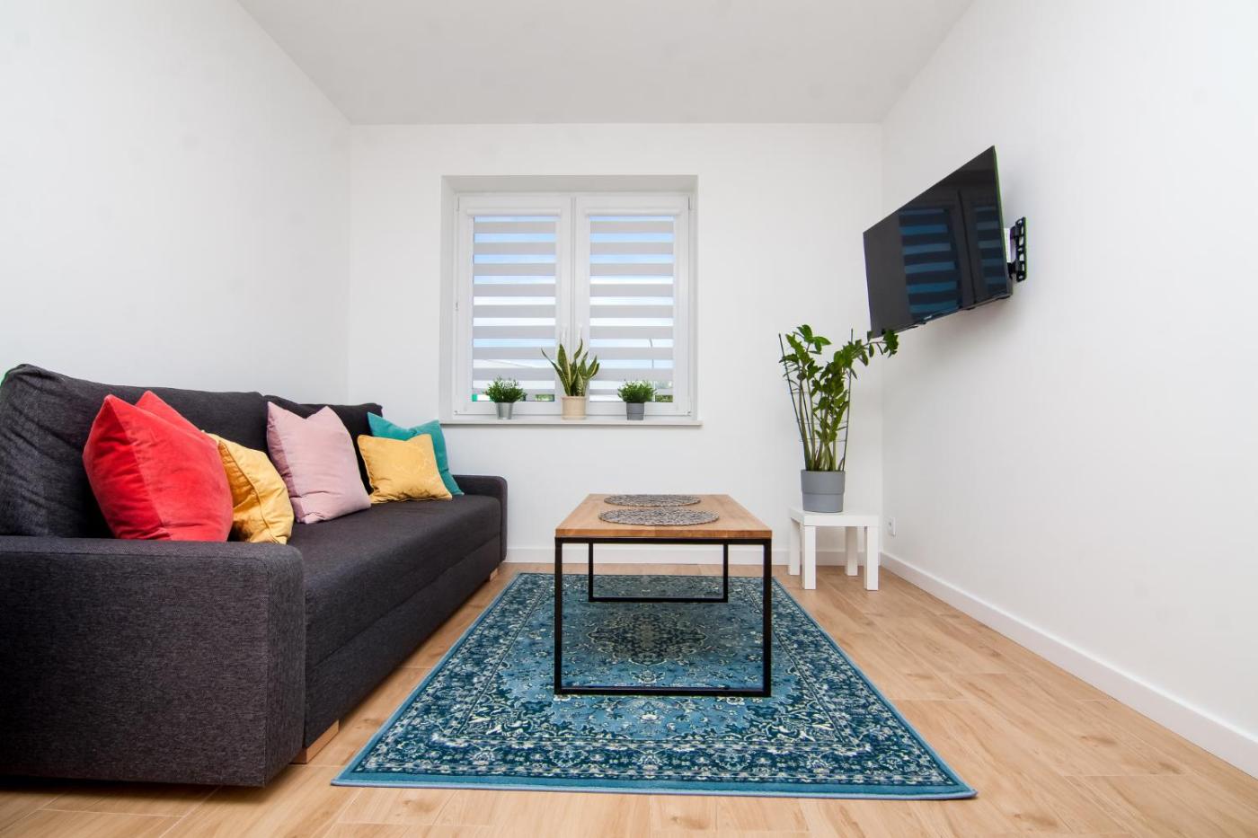 Apartament Rodzinny z 1 sypialnią. This apartment consists of 1 living room, 1 separate bedroom and 1 bathroom with a shower and a hairdryer. The fully equipped kitchen features a stovetop, a refrigerator and an electric kettle. This apartment has a wardrobe, heating and a flat-screen TV. The unit offers 3 beds. Apartament - 4 osobowy. Powierzchnia pokoju ok.: 40 mkw.