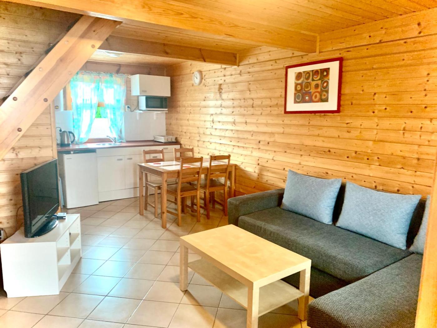 Domek z 2 sypialniami. Guests will find a stovetop, a refrigerator, kitchenware and a microwave in the kitchenette. The chalet also has a barbecue. Featuring a terrace with ancourtyard view, this chalet also offers a seating area and a flat-screen TV. The unit offers 5 beds. Domek - 8 osobowy. ;
