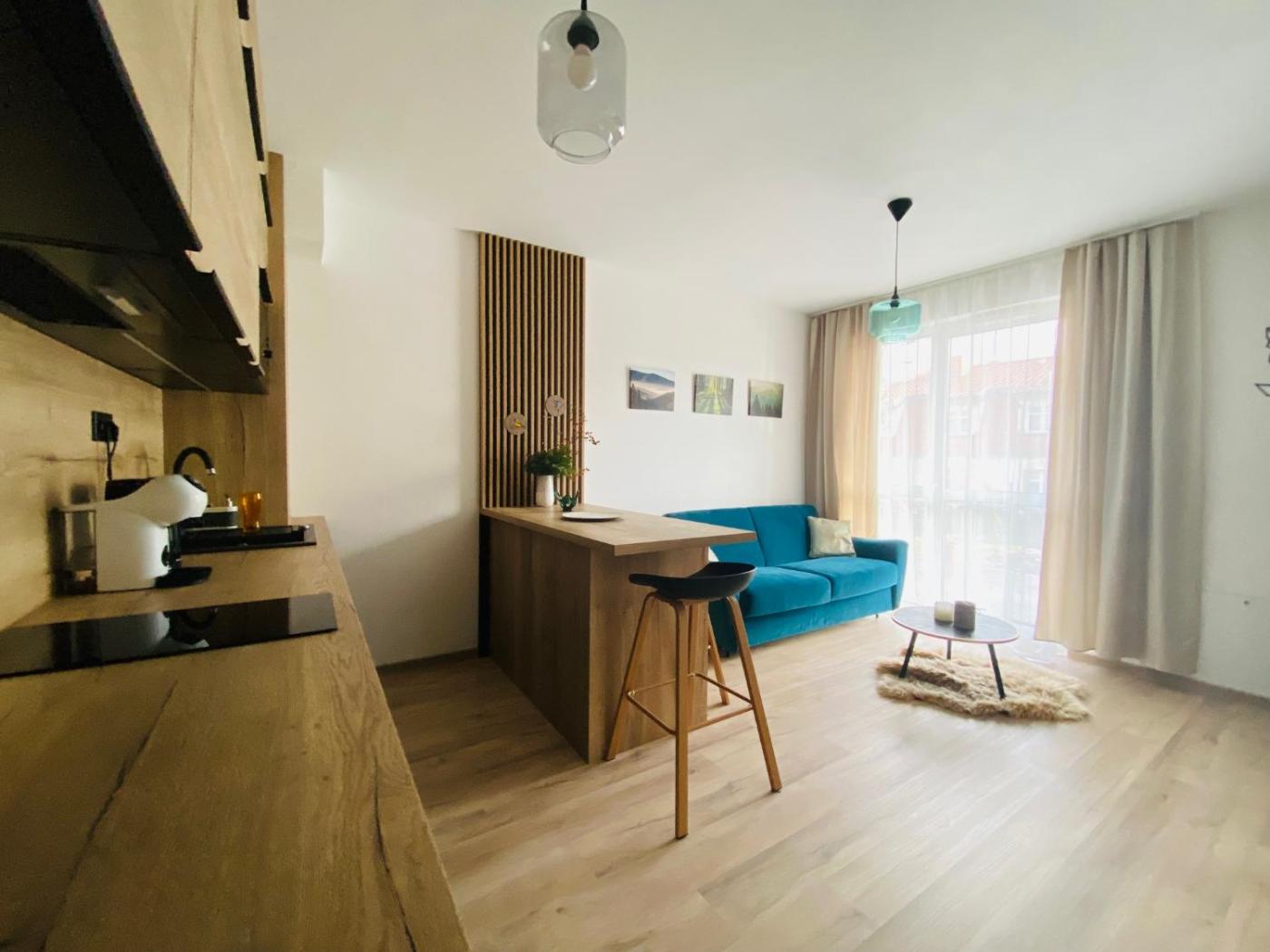 Apartament z 1 sypialnią. This apartment includes 1 living room, 1 separate bedroom and 1 bathroom with a shower. Meals can be prepared in the well-fitted kitchen, which has a stovetop, a refrigerator, a dishwasher and kitchenware. Boasting a terrace with garden views, this apartment also offers a tea and coffee maker and a flat-screen TV. The unit has 2 beds. Apartament - 4 osobowy. Powierzchnia pokoju ok.: 30 mkw.